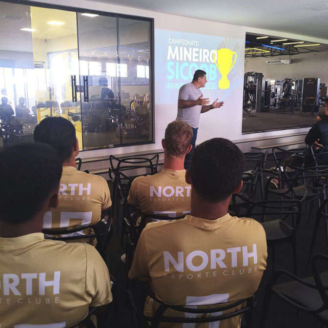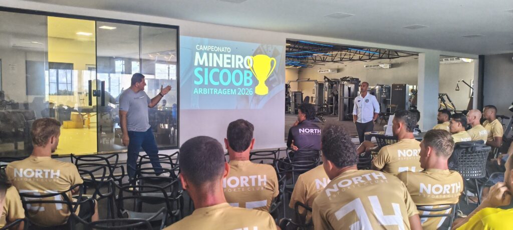 Na manhã desta quarta-feira (07), a comissão técnica e os jogadores do North Esporte Clube participaram de um treinamento especializado ministrado por Joel Tolentino, instrutor de arbitragem da Federação Mineira de Futebol (FMF) e da Confederação Brasileira de Futebol (CBF). O foco da atividade foi a atualização sobre as regras de jogo e as normas de conduta para atletas e árbitros.